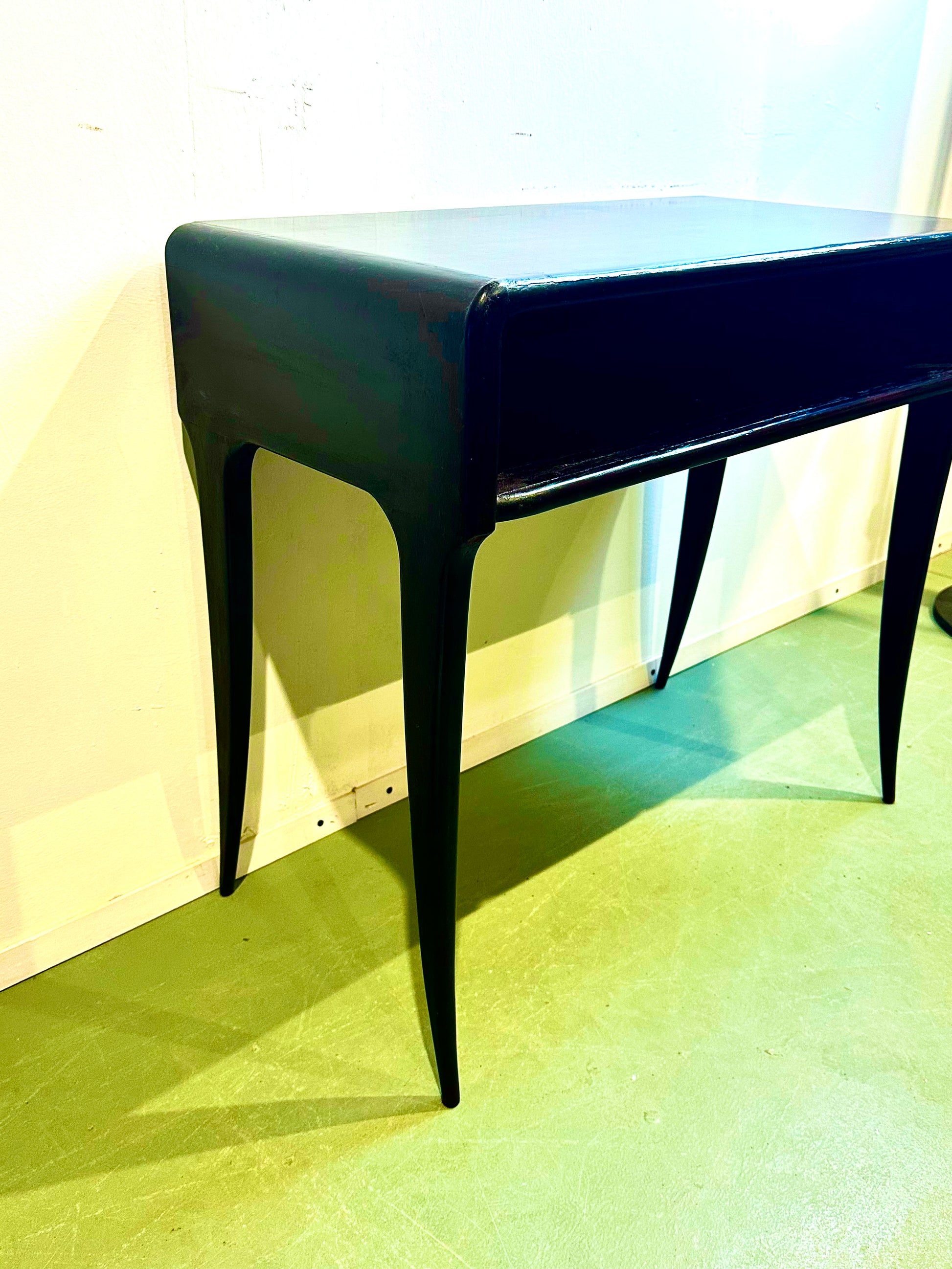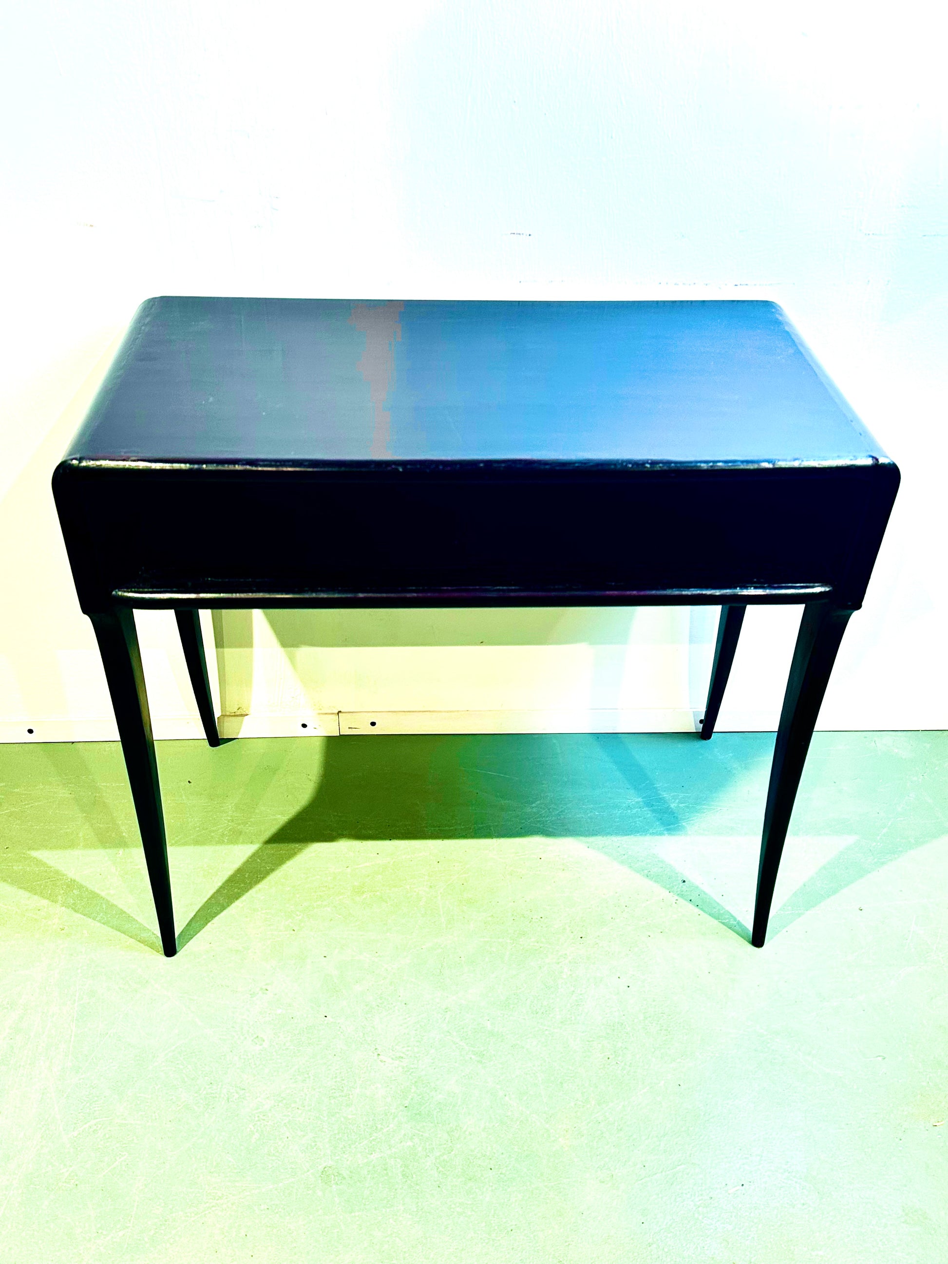 Comodo e gradevole tavolino anni 50 laccato nero perfetto come porta televisore radio ecc.. Molto elegante con le gambe a sciabola e contenitore di appoggio documenti agenda CD ecc.. Adattabilissimo anche come mobile d'ingresso consolle ecc..